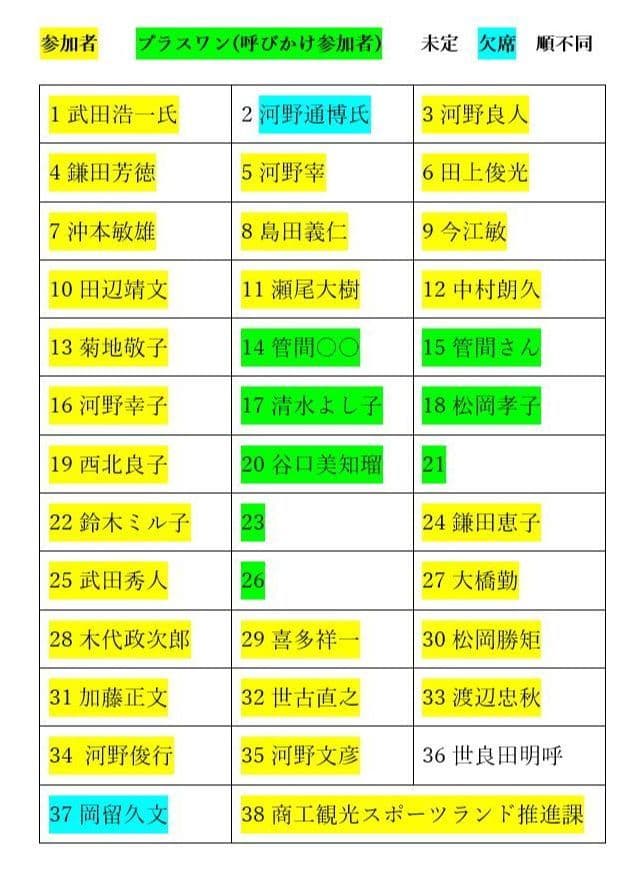 出 席 予 定 者