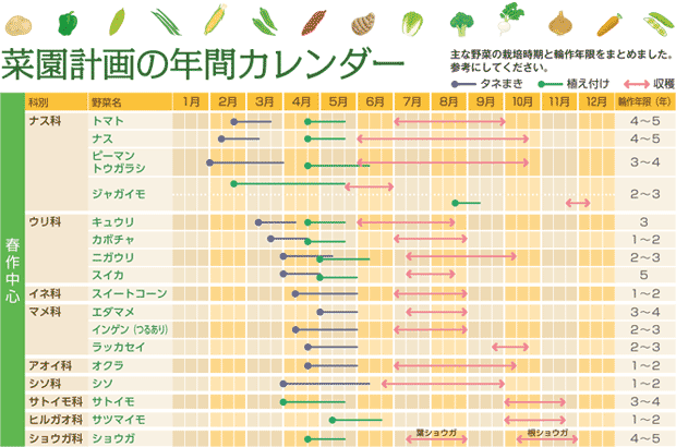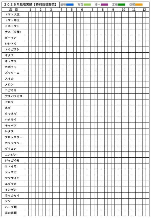 2026年においてはこの栽培計画に記載された野菜を全て栽培するのではなく、一応の目安として参考にしてください。